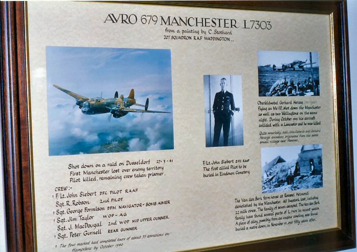 - a photo of Flt Lt John Siebert DFC RAAF, the first Allied Pilot to be buried in Eindhoven Cemetery